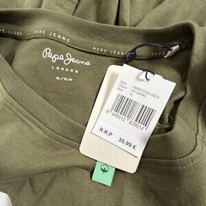 Pepe Jeans London Slim Fit Mens Olive Green Graphic T-Shirt XL Cotton Casual New