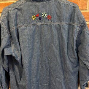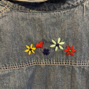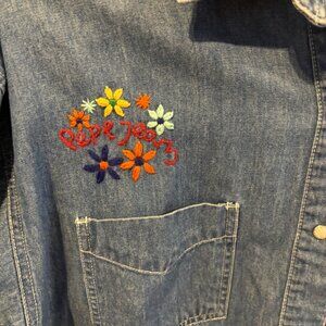 Pepe Jeans Womens Embroidered Denim Button-Up Shirt W/Floral Details 90s