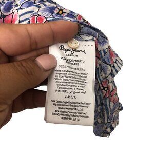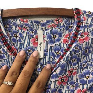 Pepe Jeans Womens Floral Bead Collar Sleeve Trim Button Shirt Size Small