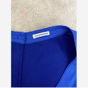 This Club Monaco dress features a colorblock design in shades of blue, made of 100% silk. Only worn once, amazing 10/10 condition. The sleeveless pencil dress has a midi length and is perfect for a party or cocktail occasion. The dress is in size 6 and is designed for women who prefer regular sizing. The vibrant and colorful theme adds a playful touch to the overall look
