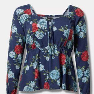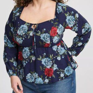 Challis woven fabric: light weight-perfect for summer, sweetheart neckline, long sleeves and peplum waist.