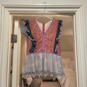 - Color block lace with peplum style hem