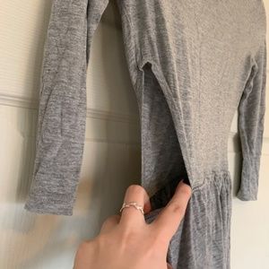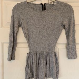 Grey Peplum Shirt with Cut Outs on Sides Above Waist; Jersey Material