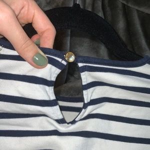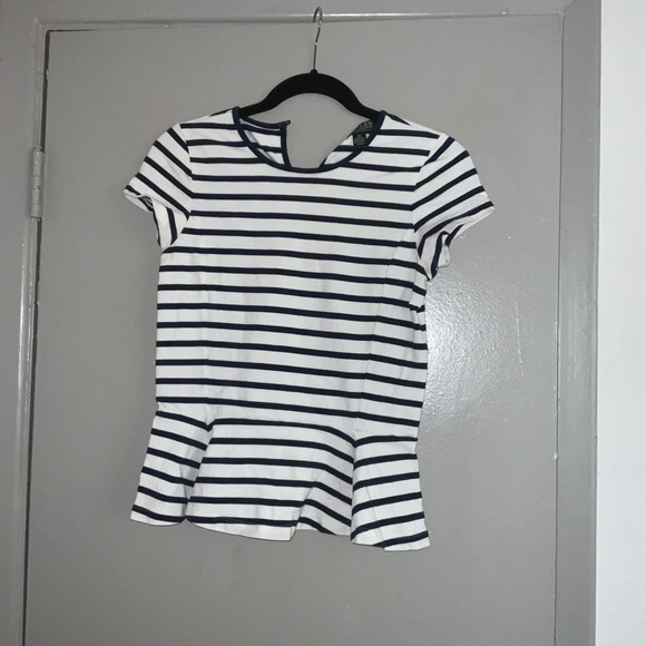 Ralph Lauren petite-small Peplum Top. White with navy stripes