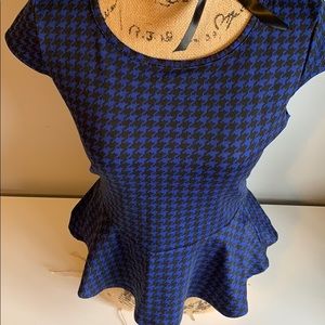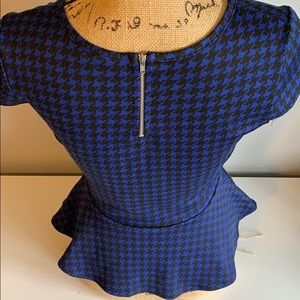 Chic peplum top with black and blue pattern with a zipper detail on the back. Worn once.