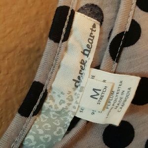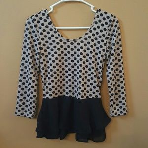 Adorable grey and black peplum top with polka dots. Size medium but could fit a small. Great condition and looks fabulous with a grey pencil skirt (which will be up in my closet soon) and black booties!