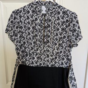 Girls from Savoy peplum top from Anthropologie, size 6. Decorative working zipper in the front. Side zipper to help get on. Both zippers work perfectly. Has attached side fabric belt to tie in back or front.