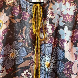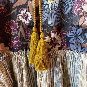 Flutter Sleeve Peplum Top V-neck with neck tie. Peplum bottom Mixed print floral striped print. New with tags attached. Shell 99% Cotton, 1% Spandex / Contrast 100% Rayon Model wears: S