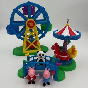 Peppa Pig Fair Playset Merry-Go-Round Ferris Wheel Bridge Panda Cake Topper Toy