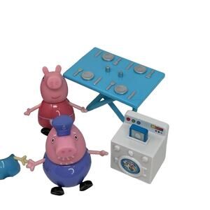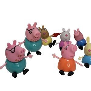 Get ready for endless hours of fun with this Peppa Pig & Friends Toy Action Mini Figures Lot Of 9 + Car, Picnic Table & More. Join Peppa and her friends on their exciting adventures. This colorful and durable plastic toy set includes a car, picnic table, and mini figures of Peppa Pig and her friends.