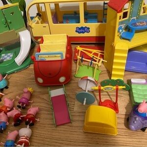 Peppa Pig HUGE Playset Lot Figures Camper Van Peek N Surprise Fold House Car