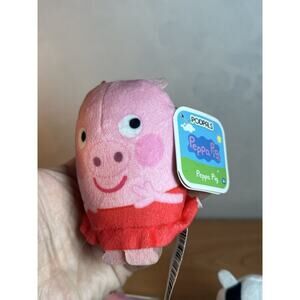 This lot of three Peppa Pig Podpals action figures includes Peppa, George, and Zoe the Zebra. Each figure stands at 3 inches tall and is in its original packaging. These figures are perfect for any Peppa Pig fan or collector, and feature the adorable characters from the popular franchise. The brand is Just Play. These mini plushes are sure to make a great addition to any toy collection or Peppa Pig display.