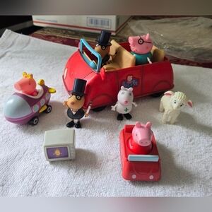 Explore fun adventures with Peppa Pig and friends. Includes red car, pink spaceship, and characters.