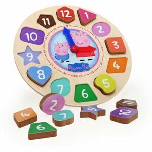have fun learning with the peppa pig™ shape sorter wood clock set! toddlers & little kids will love learning about shapes, colors, & how to tell time with this cute toy.