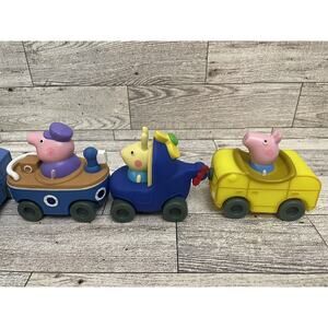 This lot of 5 Peppa Pig action figure sets includes vehicles and cars for hours of imaginative play. Each set features a different vehicle type and character, all from the beloved Peppa Pig franchise. Whether your child wants to pretend they're driving around with Peppa or going on an adventure with her friends, these action figures are sure to delight. The sets are gently used and in great condition, ready for a new home to continue inspiring creativity and fun.