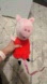 Adorable Peppa pig plush toy in red and pink.