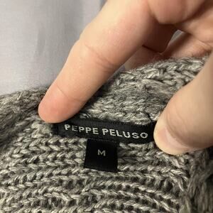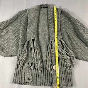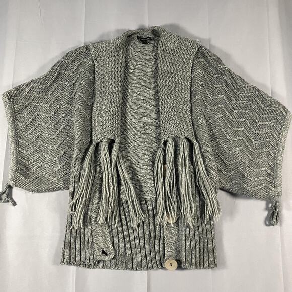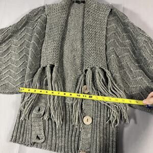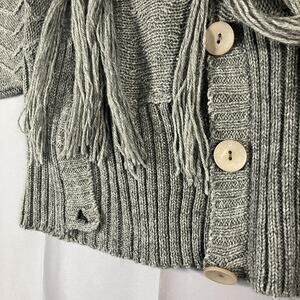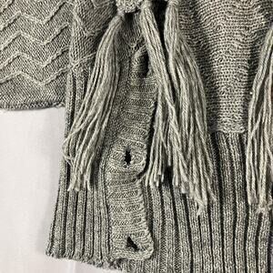 Peppe Peluso Sweater Womens Medium Gray Knit Fringe Cardigan Chunky Boho