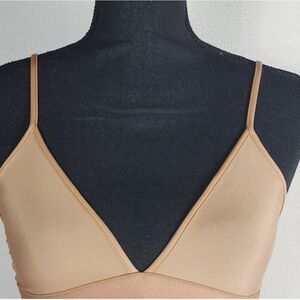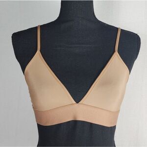 Experience comfort and style with this tan bralette, perfect for everyday wear. Made for small chests. New without tags. Never worn because I needed a smaller size.