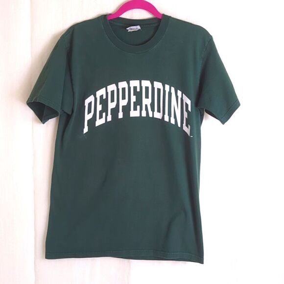 Pepperdine Champion Short Sleeve Green Tee Shirt Size Medium