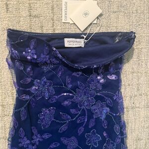 Peppermayo Blue Moorey Beaded Strapless Bodycon Dress