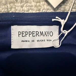 This striking strapless bodycon dress by Peppermayo is crafted in a captivating blue hue, perfect for cocktail events or a night out. The embellished fabric features a sophisticated pattern that adds a touch of elegance and dimension to its sleek silhouette. Designed to hug your curves, this dress is a showstopper for any special occasion.