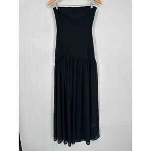 Peppermayo Eden Strapless Maxi Dress Semi Sheer Skirt High Slit Asymmetric Black