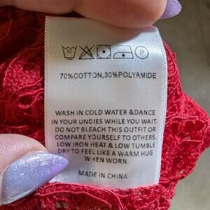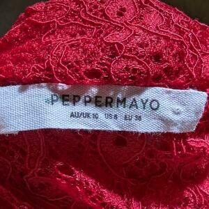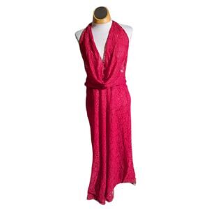 Peppermayo Elysia Cherry Red Lace Draped Cowl Neck Open Back Maxi Dress Sz 6