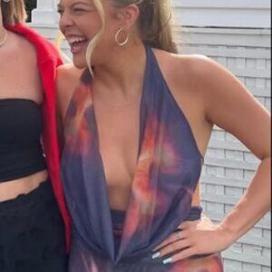 The Elysia Mesh Maxi Dress Features a deep cowl open neckline and an open back with a tie for support.