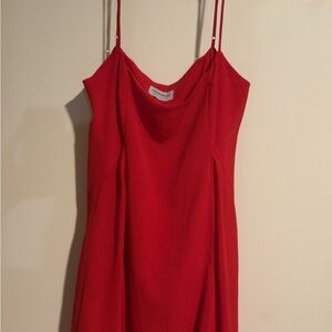 This stunning red dress features delicate spaghetti straps, perfect for any occasion. Its vibrant color adds a touch of elegance and style to your wardrobe. Make an offer