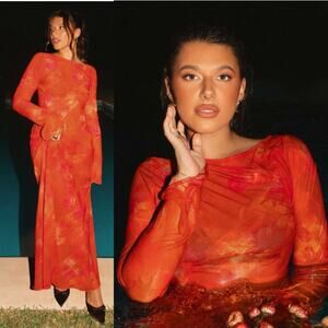 Tags: Maximalist, Summer, Vacation, Resort wear, Maxi Orange sheer dress, sophistication with the Lorde Maxi Dress, Disco, Boho, Sheer bohemian maxi dress, Cutl Gia, Vacation sheer maxi dress, Floral orange retro maxi dress.