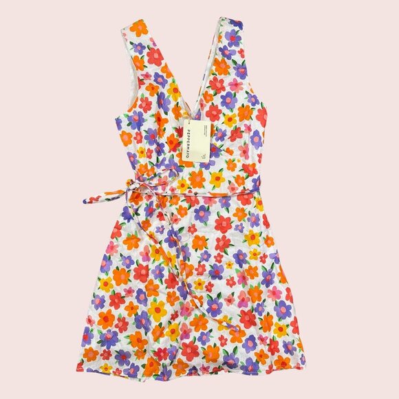 Peppermayo NWT Monday Margs Linen Wrap Mini Dress Floral V-Neck Women's Size 0