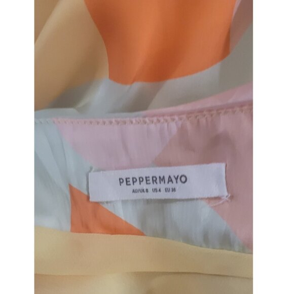 Peppermayo Art Films Satin Cowl Neck Dress - Pastel Wave. Size 4.
