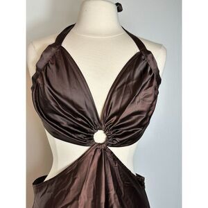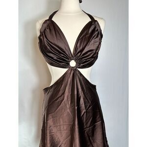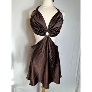 Peppermayo Resort Vibes Brown Satin Cut Out Mini Dress Size 10