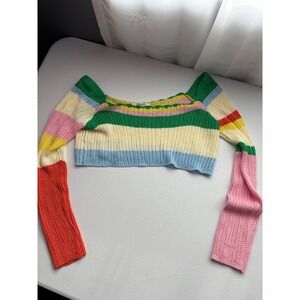 Peppermayo Striped Knit Crop Top Long Sleeve Colorful S/M