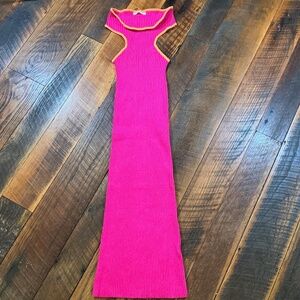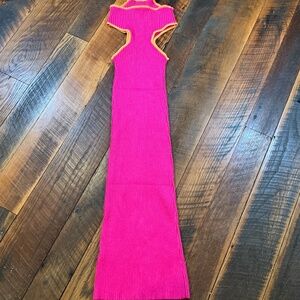 Peppermayo Sunrise Cove Maxi Dress Hot Pink Orange Ribbed Cutout Knit Dress S/M