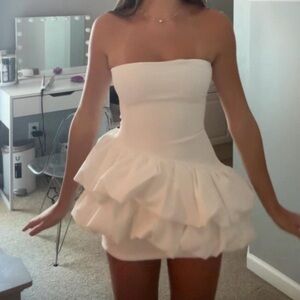 Chic strapless mini dress with ruffle detail. Perfect for stylish outings.