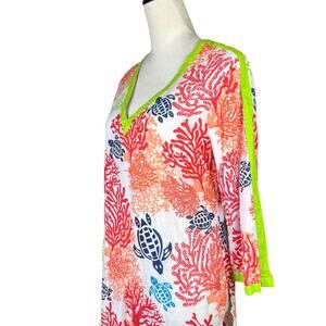 Peppermint Bay Colorful Orange Coral & Turtle Print Tunic Beach Swim Coverup