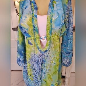 Chic swim cover-up by Peppermint. Features a vibrant blend of blue and green. Ideal for beach outings.