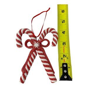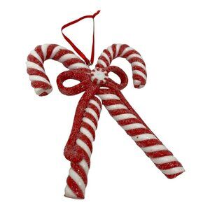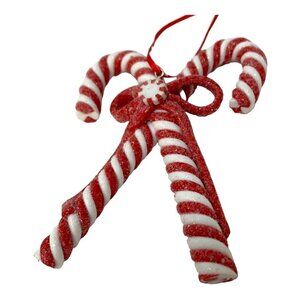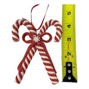 Peppermint Candy Cane Ornament 4" Crisscross Glitter Holiday Candyland Decor Red