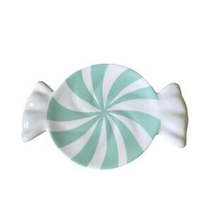 Peppermint Candy Shaped Appetizer Plate Set of 4 Holiday Mint & White Melamine