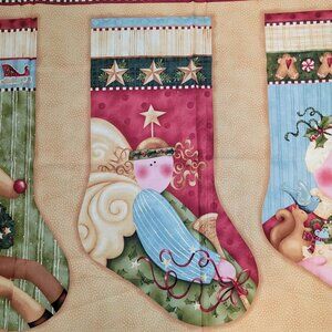 Peppermint & Hollyberries Christmas Stocking or Quilt Project Panel Fabric Angel