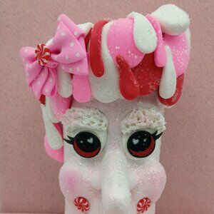 Bring a touch of sweet whimsy to your holiday décor with this handcrafted Peppermint Candy Lady Candle! Dressed in swirls of pink, red, and white “frosting” and topped with a polka-dot bow and candy accents, she’s the perfect mix of cute and festive. Measures 8x4