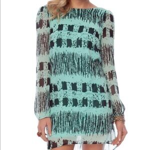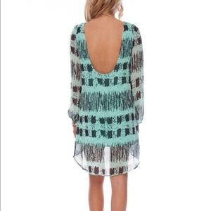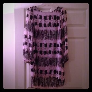 Pink and black tunic dress. Never worn! Long sleeved, longer in the back. Open back. Mini, fancy or casual, cocktail dress