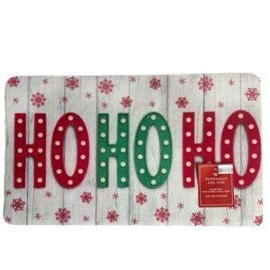 Peppermint and Pine Ho Ho Ho Red, Green, Winter White/Grey Accent Rug Large Mat 17.3” X 20.9”