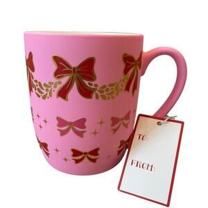 Add a festive touch to your holiday mornings with this Peppermint & Pine Bow Garland Ceramic Coffee Mug! Featuring a soft-touch ceramic finish and an adorable pink and red bow holiday garland motif, this stylish mug is perfect for sipping coffee or tea all season long. Brand new and beautifully crafted, it makes a charming gift or a cozy addition to your winter drinkware collection.
