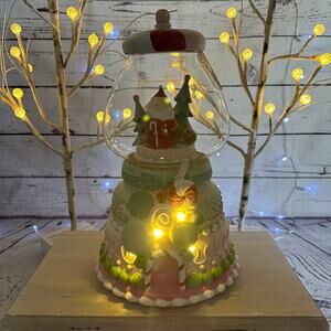This whimsical, eye-catching piece is a true standout for holiday décor. Featuring pastel candy-themed design, a light-up globe and musical function (ON1 = lights only, ON2 = lights + music), it measures approximately 13.5″ tall x 9″ wide. Perfect for a Candyland/pastel-themed Christmas display, tiered tray, or collector showpiece.
