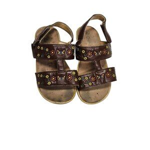 Charming Peppermints Toddler Girls' embossed Flowers Sandals in size 8.5. Crafted from (faux?) leather in a lovely brown color, these sandals provide style and comfort for little feet.