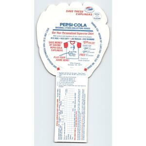 Vintage 1977 Pepsi-Cola promo baseball trading card. These were made to be inserted into cartons of soda at the Pepsi plants back in the day but most here are unused old stock. The photos of each player will punch out of the holder. The backs have a promo offer for a Pete Rose T-shirt and mail in information is on bottom. Size is 9" x 5". Super clean condition.
