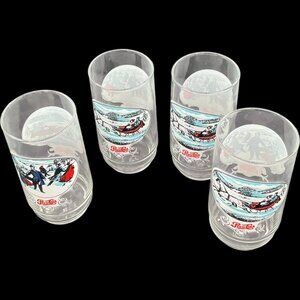 Pepsi Cola Soda Winter Scene Clear Skating Victorian 1980s Drinking Glasses