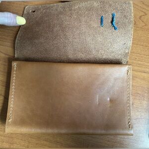 Cool novelty tan leather cord organizer with pocket featuring Pepsi Cola logo. Features a unique blue stitch detail. Ideal for daily use.